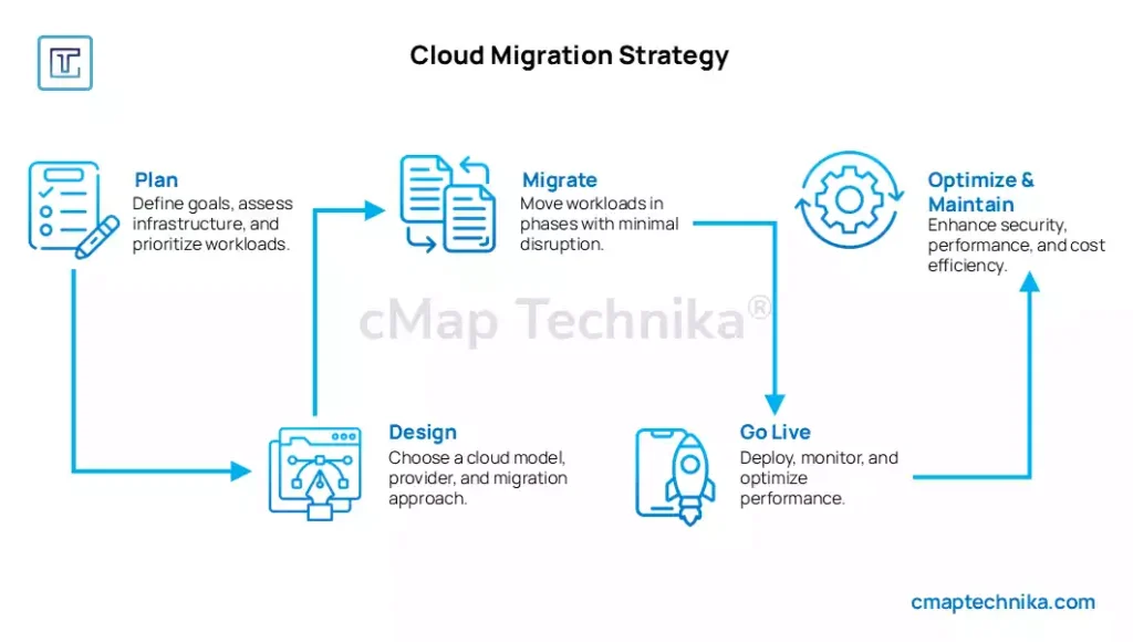 A well-structured migration strategy is critical for minimizing downtime, ensuring business continuity, and optimizing cloud benefits. Organizations should adopt a phased approach that aligns with their operational goals.