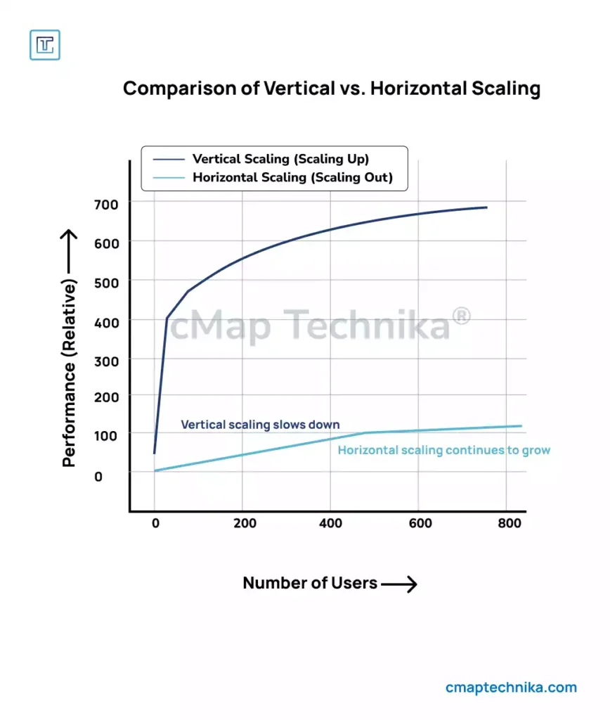 - Vertical Scalability (Scaling Up): This approach involves adding more power (CPU, RAM, storage) to an existing server. While it provides immediate performance improvements, it has limitations in terms of cost and capacity.