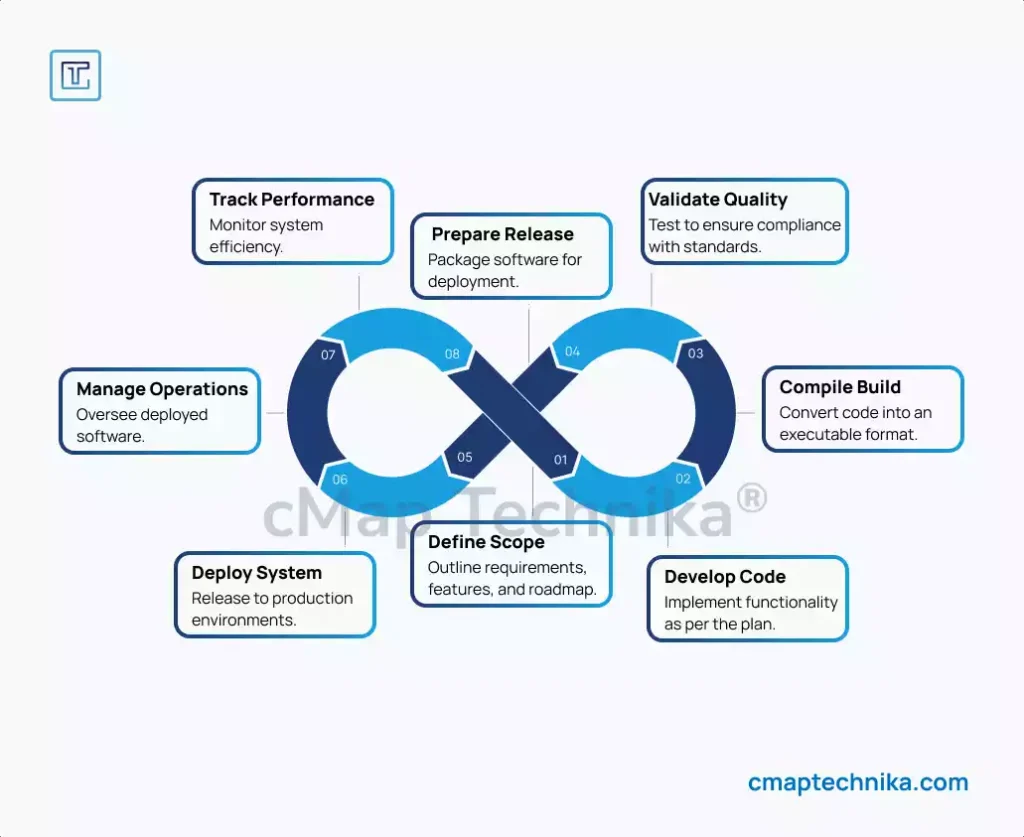 - Continuous Integration (CI): Developers frequently merge their code into a shared repository (e.g., GitHub, GitLab), where automated tests run to catch bugs early.