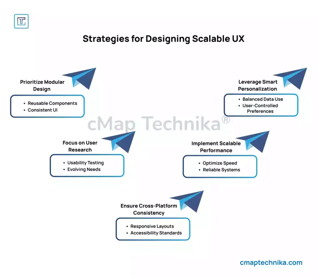 By employing strategies like modular design systems, cross-platform consistency, and effective personalization, businesses can ensure that their digital experiences continue to meet the needs of users while supporting organizational growth. A scalable UX design not only enhances user satisfaction but also helps businesses stay competitive and responsive as they expand.