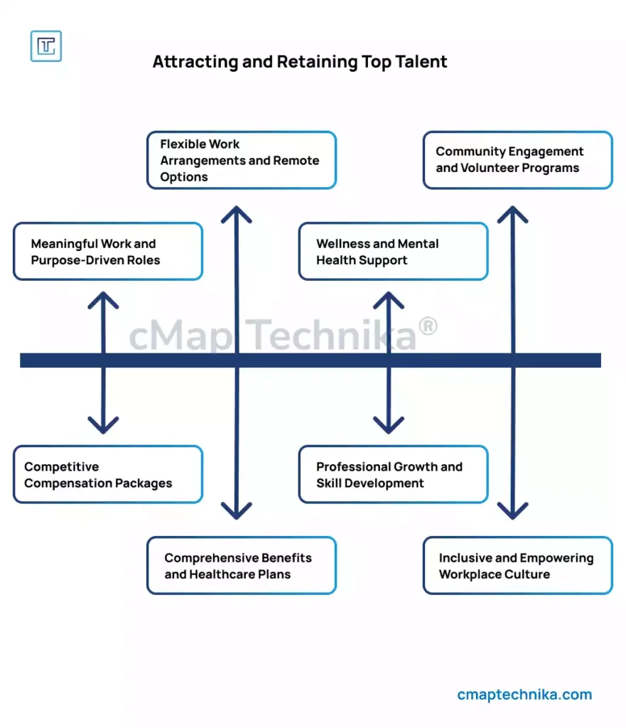 Despite these challenges, businesses can implement strategic approaches to attract and retain top talent. Here’s how: