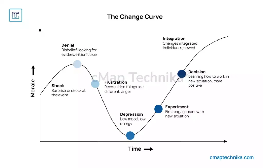 The true challenge isn’t just initiating change—it’s ensuring it gains traction, overcomes resistance, and leads to lasting impact. Without a clear roadmap, organizations risk stalled initiatives, disengaged employees, and missed opportunities. This is where the Change Curve becomes essential.