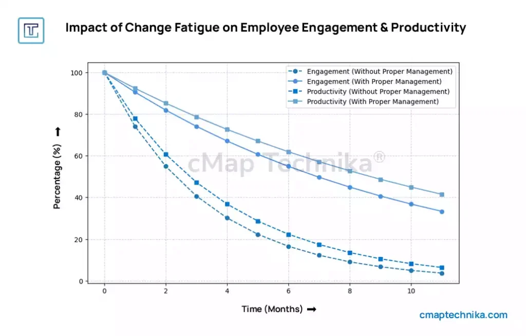 Sustained change initiatives can lead to exhaustion and disengagement if not managed properly. Employees may feel overwhelmed by continuous disruptions, impacting morale and productivity.